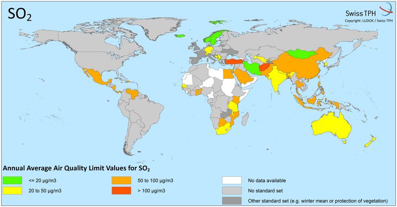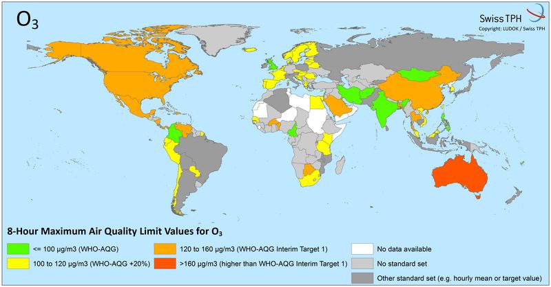 - Tabelle weltweiter Luftschadstoffe für Feinstaub, Ozon, NO2, SO2 und CO (inkl. Referenzen)
